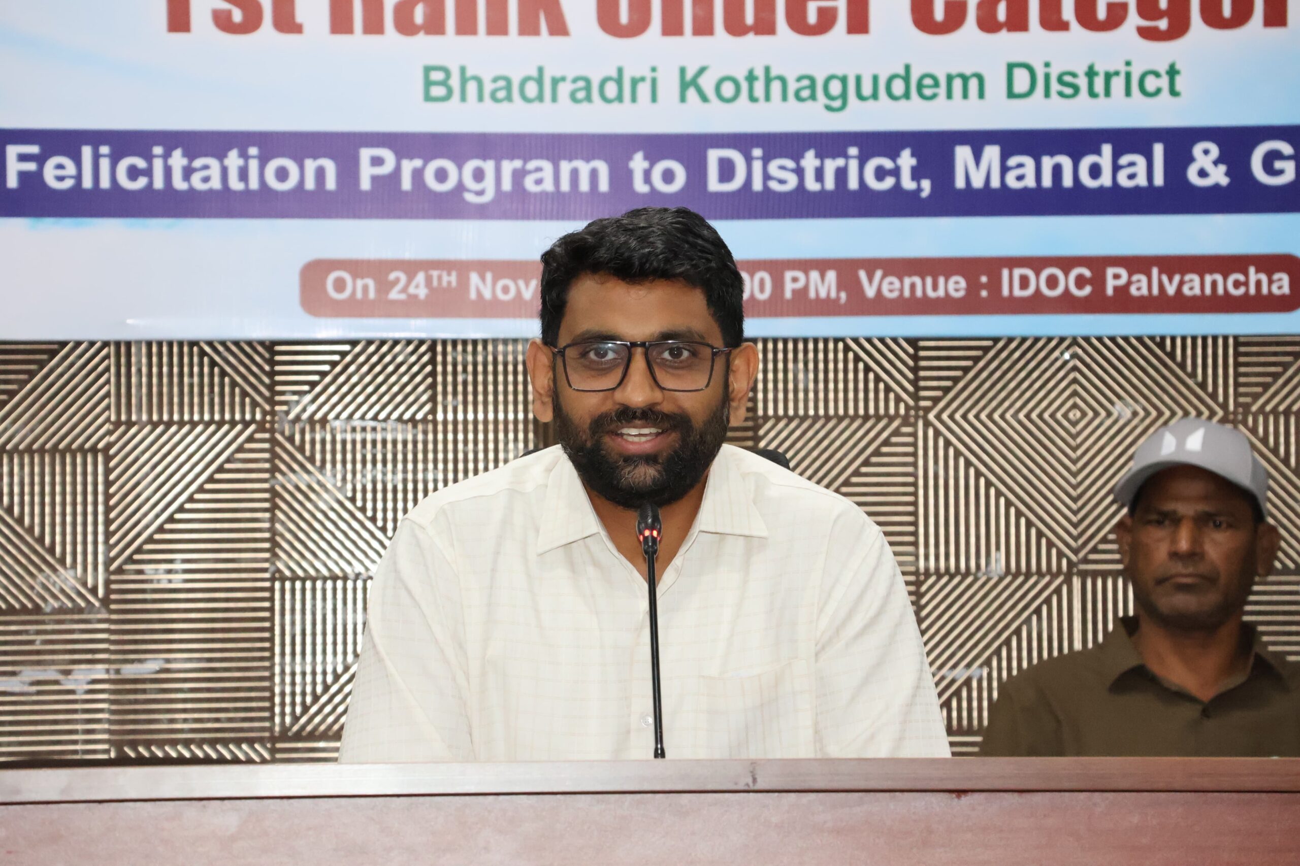 అనంతరం కలెక్టర్ మాట్లాడుతూ జిల్లాలో నీటి సంరక్షణకు చేపట్టిన ప్రతి కార్యక్రమం అధికారుల నిబద్ధత, గ్రామస్థాయి వర్గాల ప్రాముఖ్యతతో విజయవంతమైందని పేర్కొన్నారు. శ్రమయతే జయతే అనే నానుడికి నిజమైన ప్రతీరూపంగా భద్రాద్రి కొత్తగూడెం నిలిచిందని, జిల్లా సాధించిన చిత్రాలు,గణాంకాలు జాతీయ స్థాయి వేదికపై చూసినప్పుడు గర్వ భావన కలుగుతోందని అన్నారు. మొదట తక్కువ ఖర్చుతో ఇంకుడు గుంతలు ఎలా త్రవ్వాలన్న దానిపై పరిశీలన జరిపి ఎంపీడీవోలు ప్రతిపాదించిన మోడల్ను అమలులోకి తీసుకువచ్చామని, ఉపాధి హామీ కూలీలు, పంచాయతీ వర్కర్ల తో ప్రత్యక్షంగా పాల్గొనడంతో త్రవ్వకాలలో ఎదురయ్యే సమస్యలను గుర్తించగలిగామని తెలిపారు. పనికి కావాల్సిన చిన్న పరికరాలు కూడా అందుబాటులో లేకపోవడంతో “పలుగు పారా” పరికరాలను జిల్లావ్యాప్తంగా పంపిణీ చేసి కూలీలకు సహాయంగా నిలిచామన్నారు.పంచాయతీ వర్కర్లు, అంగన్వాడీ సిబ్బంది, ఆశా వర్కర్లతో ప్రారంభమైన ఒక ఉద్యమం లా అన్ని శాఖల సమన్వయంతో జిల్లావ్యాప్తంగా విస్తరించి, జాతీయస్థాయిలో జిల్లాకు ఈ ప్రతిష్ఠాత్మక అవార్డు అందించిందని తెలిపారు. అవార్డు సాధించడం ముఖ్య లక్ష్యం కాదని, భూగర్భ జలాల పరిరక్షణ, వ్యవసాయానికి నీటి అందుబాటును పెంచడం, వర్షపు నీరు భూమిలో చేరేలా చేయడం అసలు ఉద్దేశమని కలెక్టర్ స్పష్టం చేశారు.