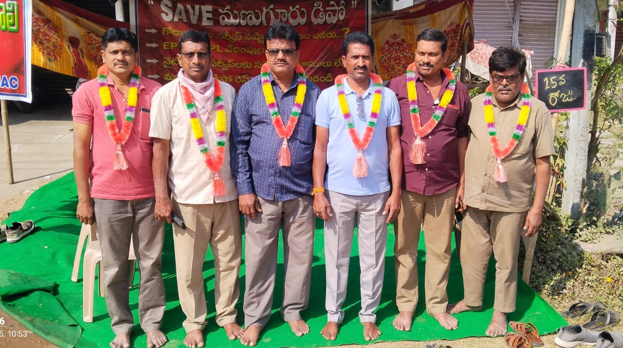 మణుగూరు, శోధన న్యూస్ : ఆర్టీసి కార్మికుల సమస్యలను పరిష్కరించాలని మణుగూరు ఆర్టీసి డిపో జేఏసి నాయకులు డిమాండ్ చేశారు. తమ సమస్యలను పరిష్కరించాలని డిమాండ్ చేస్తూ మణుగూరు ఆర్టీసి డిపో జేఏసి ఆధ్వర్యంలో చేపట్టిన రిలే నిరాహార దీక్షలు శనివారం 15వ రోజుకు చేరాయి. ఈ సందర్భంగా ఆర్టీసి జేఏసి నాయకులు మాట్లాడుతూ…మణుగూరు-గోదావరిఖని సర్వీస్ను కండక్టర్తో నడిచే ఎక్స్ప్రెస్ సర్వీస్ పునరుద్ధరించాలన్నారు. గతంలో రెండు ఎక్స్ ప్రెస్ సర్వీసులు వందశాతం పైగా ఓఆర్ సాధించి డిపోకు లాభాలు తెచ్చాయన్నారు. సూపర్ లగ్జరీ బస్సులు సింగిల్ డైవర్తో నడపడం వల్ల ఓఆర్, ఈపికెలు పడిపోయాయన్నారు. మహాలక్ష్మీ పథకం వల్ల డ్రైవర్లు, కండక్టర్లు శారీరక, మానసిక ఒత్తిడిని ఎదుర్కొంటున్నారన్నారు.